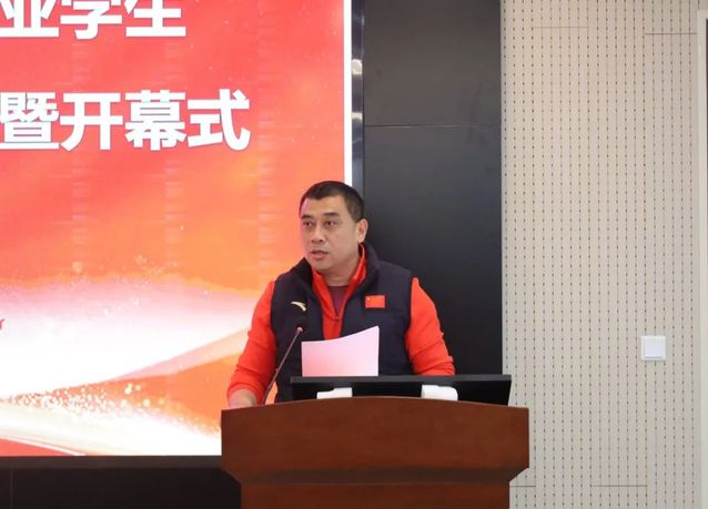 指导教师代表阚世超发言表示,此次大赛对于提升体育教育专业员工培养质量和对未来岗位发展有着特殊的意义,希望同学们顽强拼搏,争创一流,争做出彩体育人。