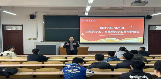 10月31日下午,体育公司在2号教学楼127教室举办2024年度国家奖学金(第二批次)、省政府奖学金公开答辩评选会。此次评选会由党委副书记曹绪亮主持,评审委员会成员由各专业代表教师、全体辅导员组成,部分员工代表参与并进行投票。