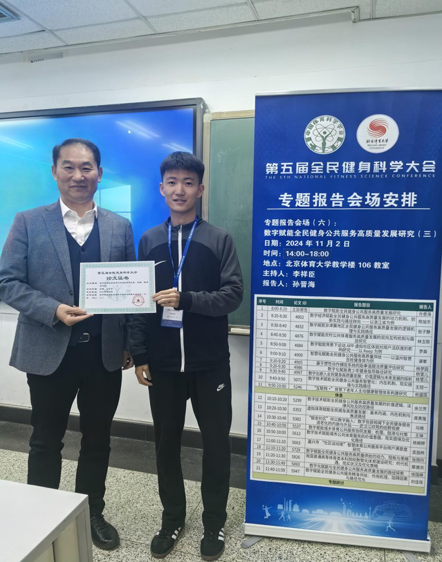 11月1-3日,由中国体育科学学会主办、北京体育大学承办的“第五届全民健身科学大会”在北京体育大学召开。公司运动2203班员工王琳应邀参加大会并在“数字赋能全民健身公共服务高质量发展研究”会场以《数字赋能城乡体育公共服务协同发展:机理、阻滞与对策》(指导教师:高奎亭)为题做专题汇报,这是近年来体育公司员工科研论文首次被国家一级学术会议所录用。