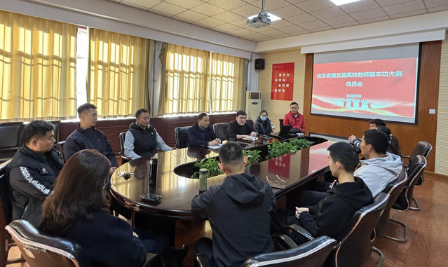 11月21日下午,公司在2-111会议室召开山东省第五届高校体育教师基本功大赛动员会。公司党委书记、经理韩长江,副经理杨刚以及参赛教师参加会议。会议由副经理杨刚主持。