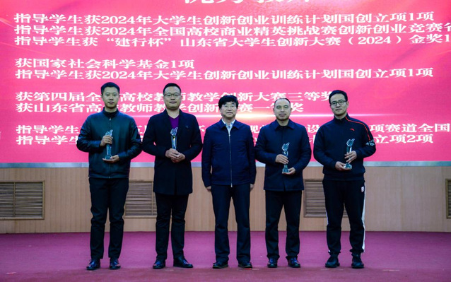人力资源处处长付圣贵、社会科学处处长邢同卫为“优秀教练员”颁奖。