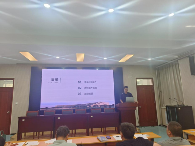 展示结束后,指导老师杨光和郭涛分别从新教师的培养过程、培养举措和成效以及与未来规划等方面进行汇报。汇报指出,两位新教师积极参与师德学习活动,不断提升教学业务能力,主动投公共服务活动;在未来规划中,他们将努力向教研和科研方向发展,以更好地回馈教学。