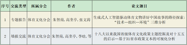 近日,第十四届全国体育科学大会论文录取结果正式公示,公司体育教育专业2022级本科生朱智南以第一作者身份撰写的论文《生成式人工智能驱动体育文物讲好中国故事的路径探索: “技术—组织—环境”三维分析》《十八大以来我国省级体育文化政策主题挖掘及对十五五的启示—基于31省市政策文本的可视化分析》(指导教师:高奎亭)分别入选体育文化分会专题报告与墙报交流。这是公司本科生首次跻身体育领域全国最高级别科学论文报告会,标志着公司体育科研力量实现重要突破,为体育教学科研发展注入全新活力。