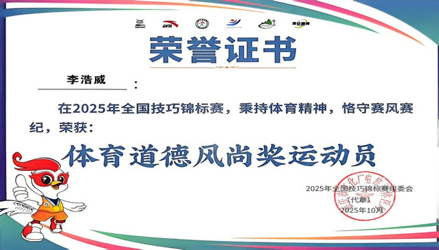 值得一提的是,2025级员工李浩威在比赛期间突发急性阑尾炎。为不辜负团队努力、坚守赛场使命,他在与医生充分沟通、确保身体安全的前提下,坚持“打针——比赛——再打针”的高强度节奏,圆满完成所有比赛任务。其顽强拼搏、永不言弃的体育精神赢得赛事组委会高度认可,被授予“体育道德风尚奖运动员”称号。