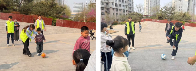 活动现场,志愿者们充分发挥体育专业优势,结合儿童身心发展特点,设计了丰富多样的体育教学与互动环节。从篮球基础运球、传球的手把手教学,到足球、排球等传统趣味运动的组织开展,志愿者们耐心示范、细致指导,用生动有趣的方式引导孩子们参与体育锻炼。无论是初学篮球的小朋友,还是热爱跳绳的孩子,都在志愿者的陪伴下尽情享受运动的快乐,在轻松愉悦的氛围中掌握体育技能、增强身体素质,同时培养了团队协作意识与运动兴趣。志愿者们还贴心关注每一位孩子的状态,对年龄较小的幼儿给予一对一的温柔引导,让每一个孩子都能在运动中收获成长与快乐。